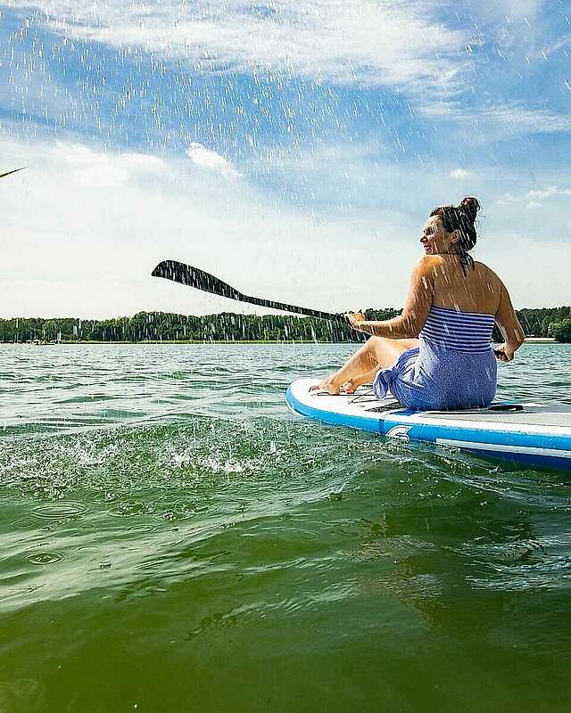 Stand Up Paddling ist die Trendsportart auf Brandenburgs Seen und Flüssen. Egal wohin man schaut, die Stehpaddler sind von Uckermark bis Spreewald überall zu finden. Leichte Wellen und und die richtige Technik bringen das SUP-Board voran. Hier kommt jeder Muskel zum Einsatz. Mitten im Naturparadies oder vorbei an Schlössern und Stadtgewimmel ist das Paddeln im Stehen ein einzigartiges Erlebnis.