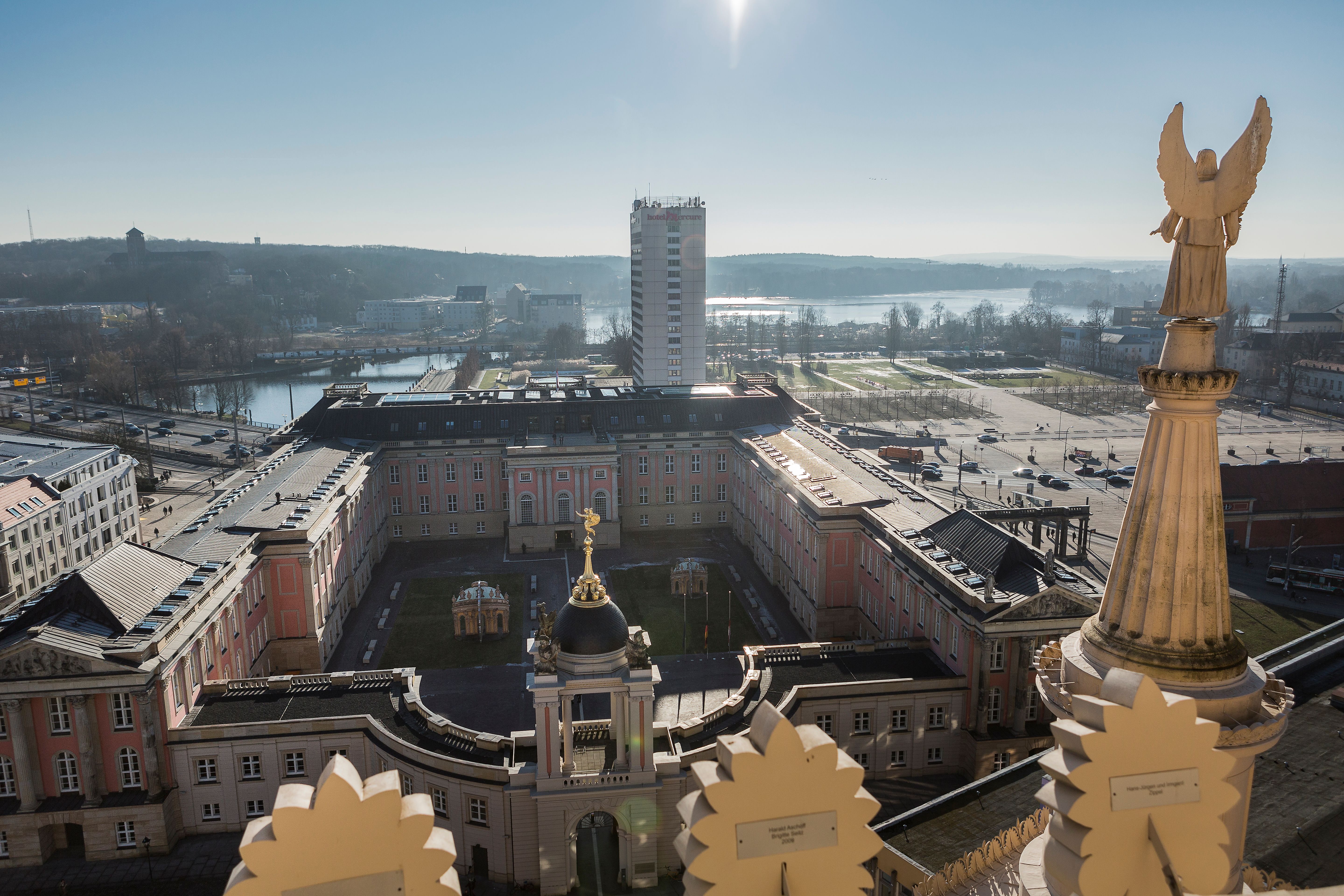 Beginnen Sie Ihre Potsdam-Besichtigung am Alten Markt, Potsdams neuem "Herzstück". Wenn Sie an der neu gestalteten Uferpromenade an der "Alten Fahrt", so heißt hier die Havel, entlang spazieren und die Treppe zum Museum Barberini hinaufsteigen, gelangen Sie durch das Museum direkt auf den Alten Markt. Nahezu alle Gebäude wurden im Zweiten Weltkrieg zerstört und sind inzwischen nach ihren historischen Vorbildern wiedererrichtet worden, allen voran das Museum Barberini, das Potsdam Museum im Alten Rathaus gleich nebenan und das Potsdamer Stadtschloss direkt gegenüber. Es beherbergt seit 2013 den Brandenburger Landtag. Die prachtvolle Nikolaikirche von Schinkel überstrahlt den Platz. Von der 42 Meter hohen Aussichtsplattform bietet sich Ihnen ein herrlicher Blick über Potsdam, die Havelseen und das nahe Umland.