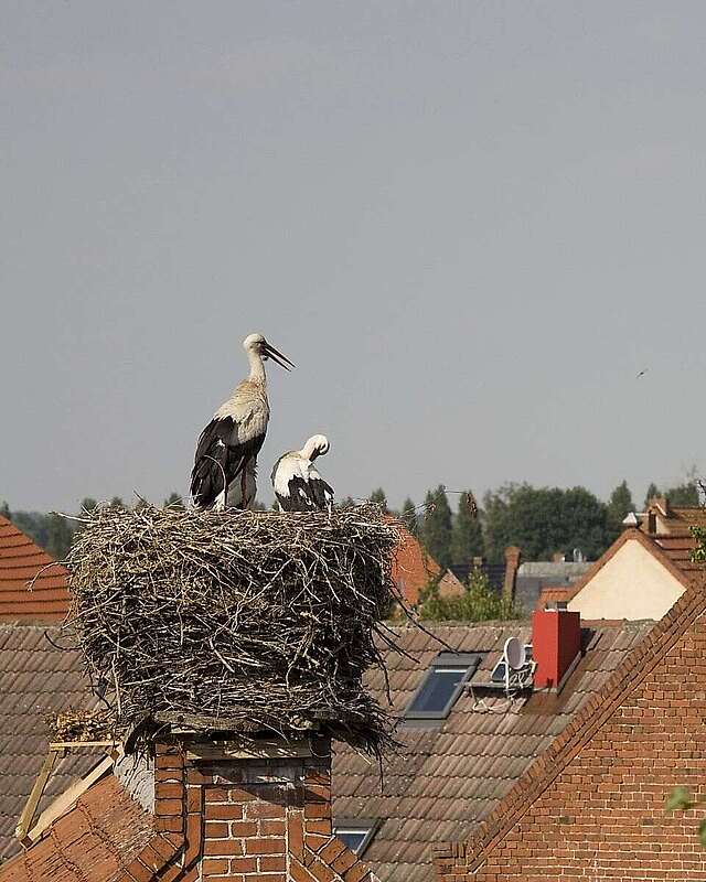 Das beschauliche Dorf Rühstädt in der Prignitz ist bekannt für seine Störche. Mit der größten Storchenkolonie Mitteleuropas trägt Rühstädt zu Recht den Titel "Europäisches Storchendorf". So gibt es kaum ein Haus, das keine Nesthilfe für Meister Adebar auf dem Dach hat. Und die schwarz-weiß gefiederten Vögel nehmen es dankbar an: Mehr als 30 Paare bauen hier jedes Frühjahr ihre Nester, um dort ihre Eier auszubrüten.