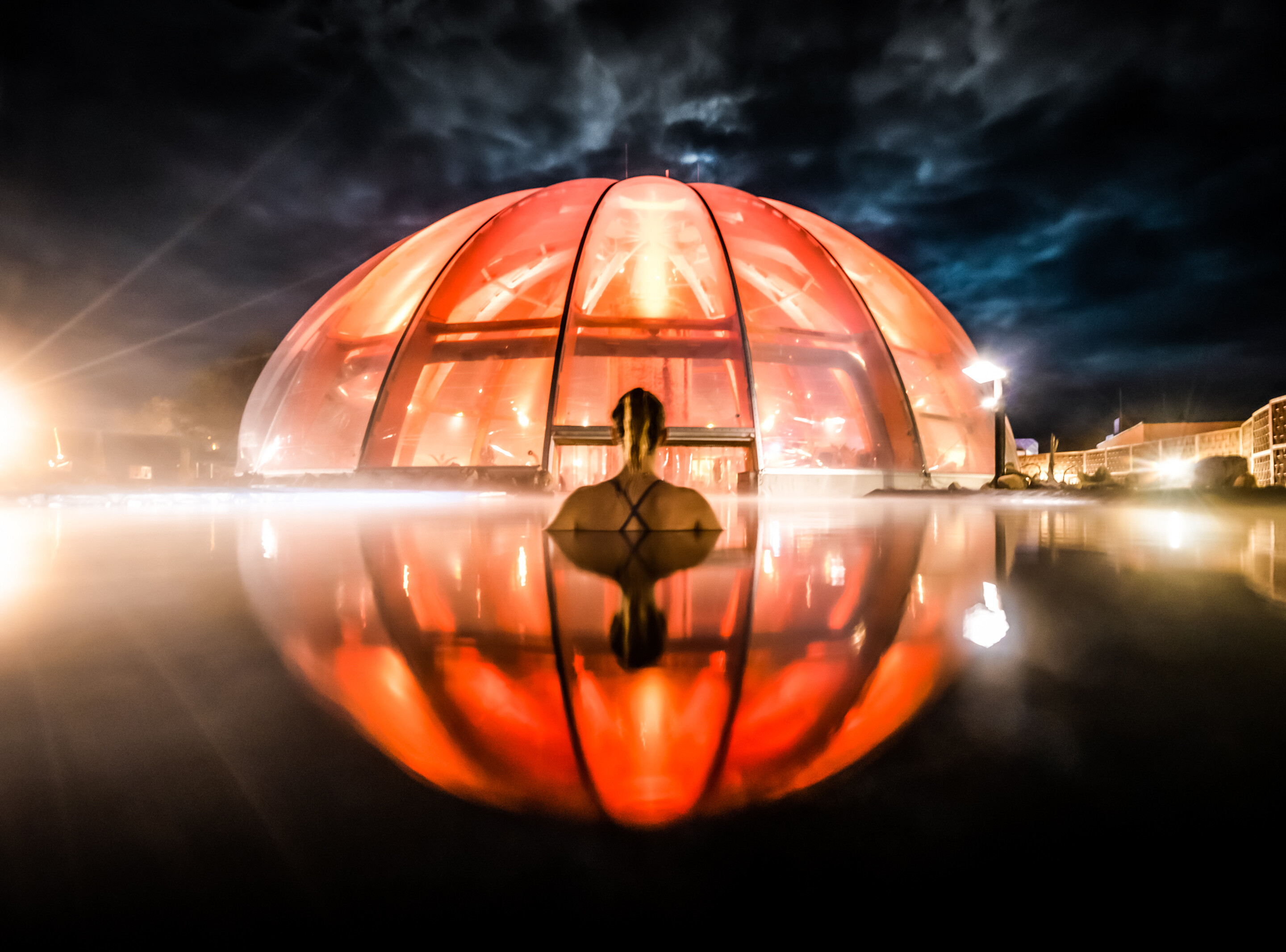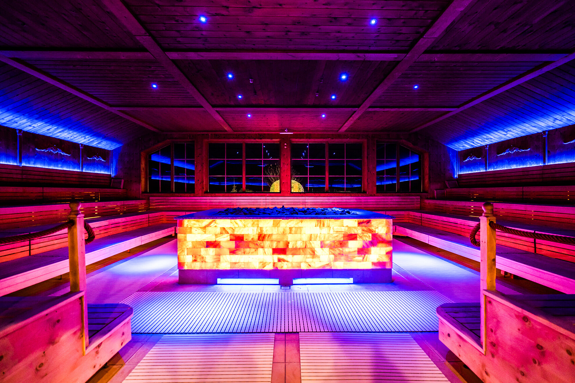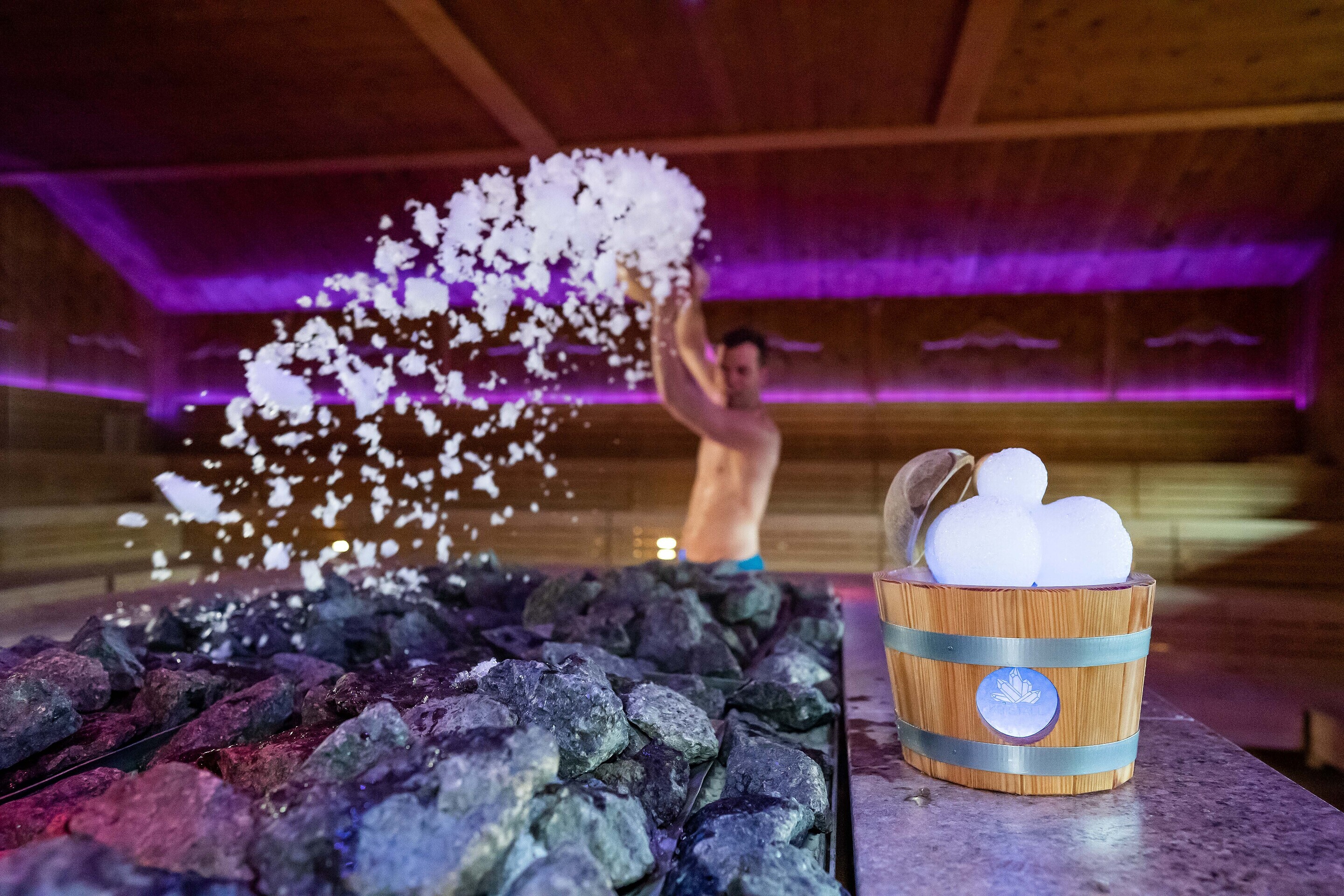 Tauchen Sie ein in unseren einmaligen Salzsee mit einem Solgehalt von 24% und entspannen Sie in einer von 8 Themensaunen.