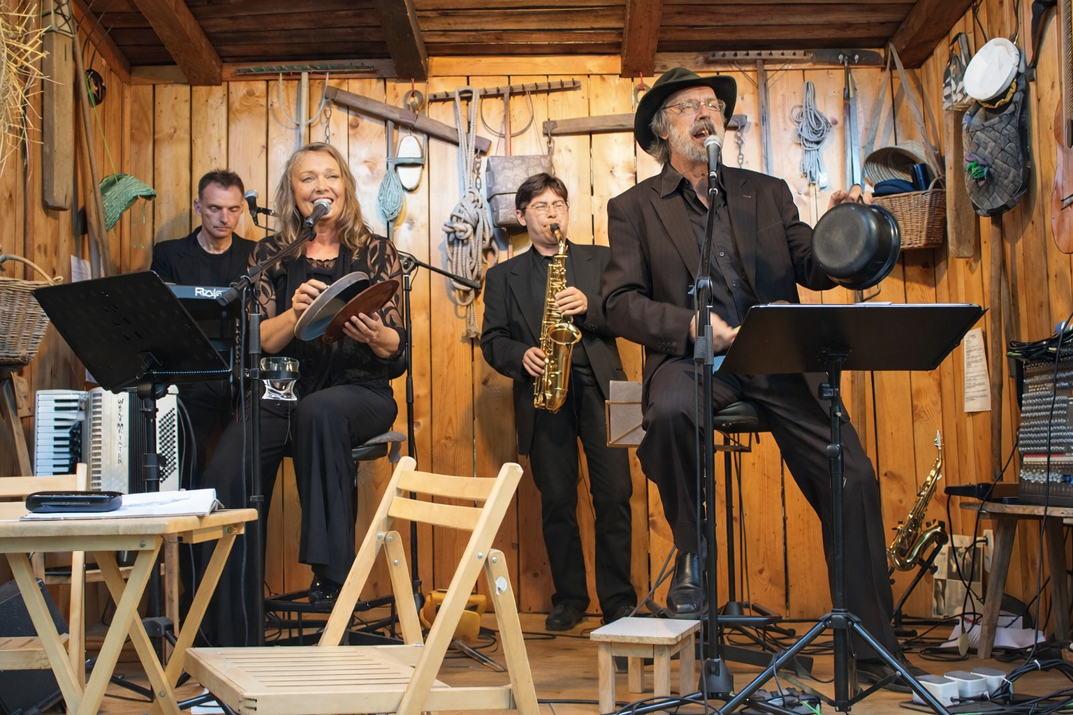 Unter der künstlerischen Leitung des Liedermachers **Wolfgang Protze** (Texte, Komposition, Gesang, Gitarre, Moderation) begeistert das Ensemble gemeinsam mit **Winfried Rogel** (Keyboard, Gesang), **Ingrid Protze** (Texte, Rezitation, Akkordeon, Gesang) und **Gerald Bassing** (Saxophon, Gesang) seit Jahrzehnten sein Publikum – erfolgreich, medienwirksam und stets mit einer unverwechselbaren Mischung aus Musik, Literatur und märkischem Humor.