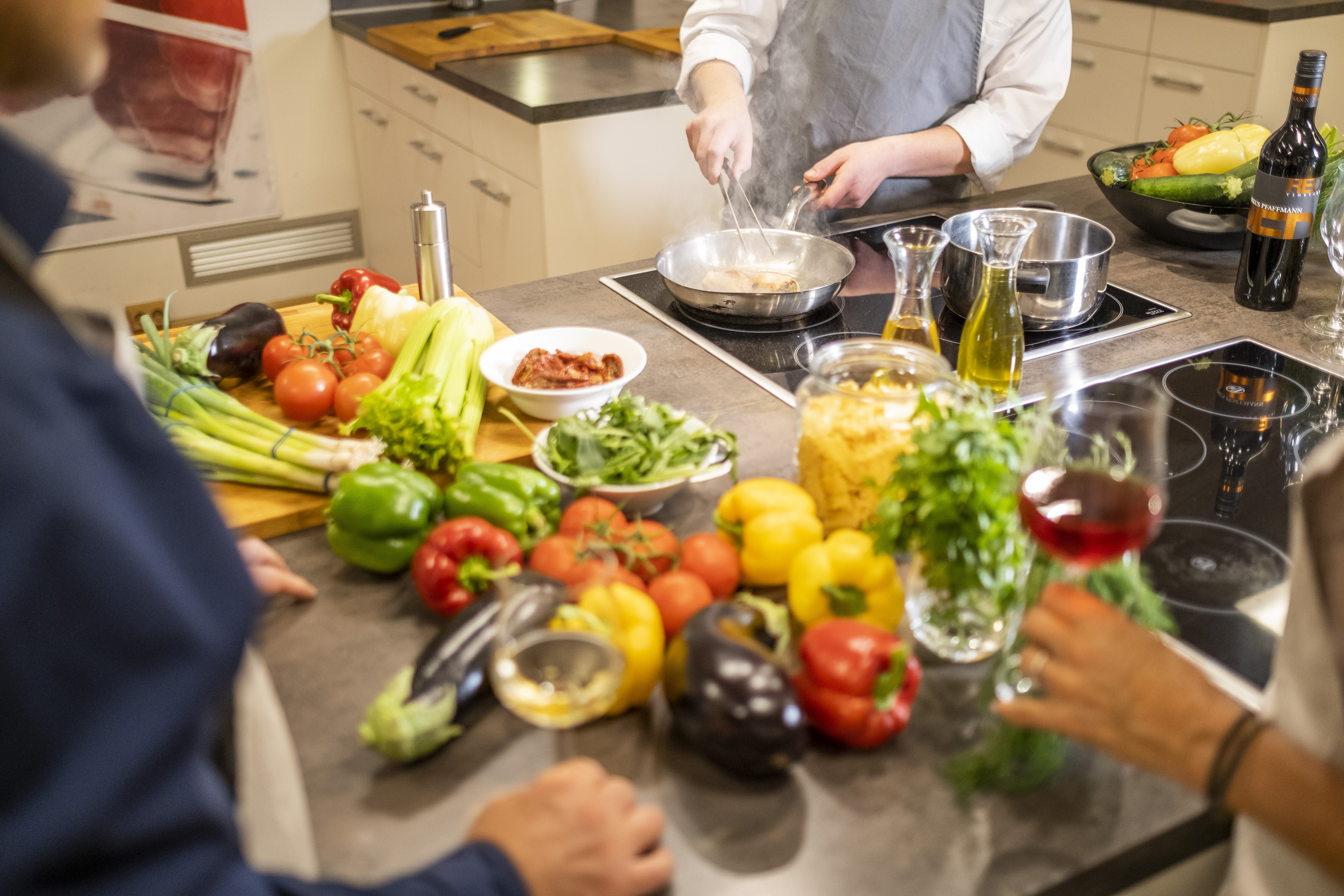 Zu besonderen Terminen weißt Sie unsere Küche in die Tipps und Tricks der Profiköche ein. In einem dreistündigen Kochkurs (14.00 - 17.00 Uhr) bereiten Sie mit den Köchen ein dreigängiges Menü in unsere KochWerkstatt zu und genießen dies dann in unserem Restaurant.